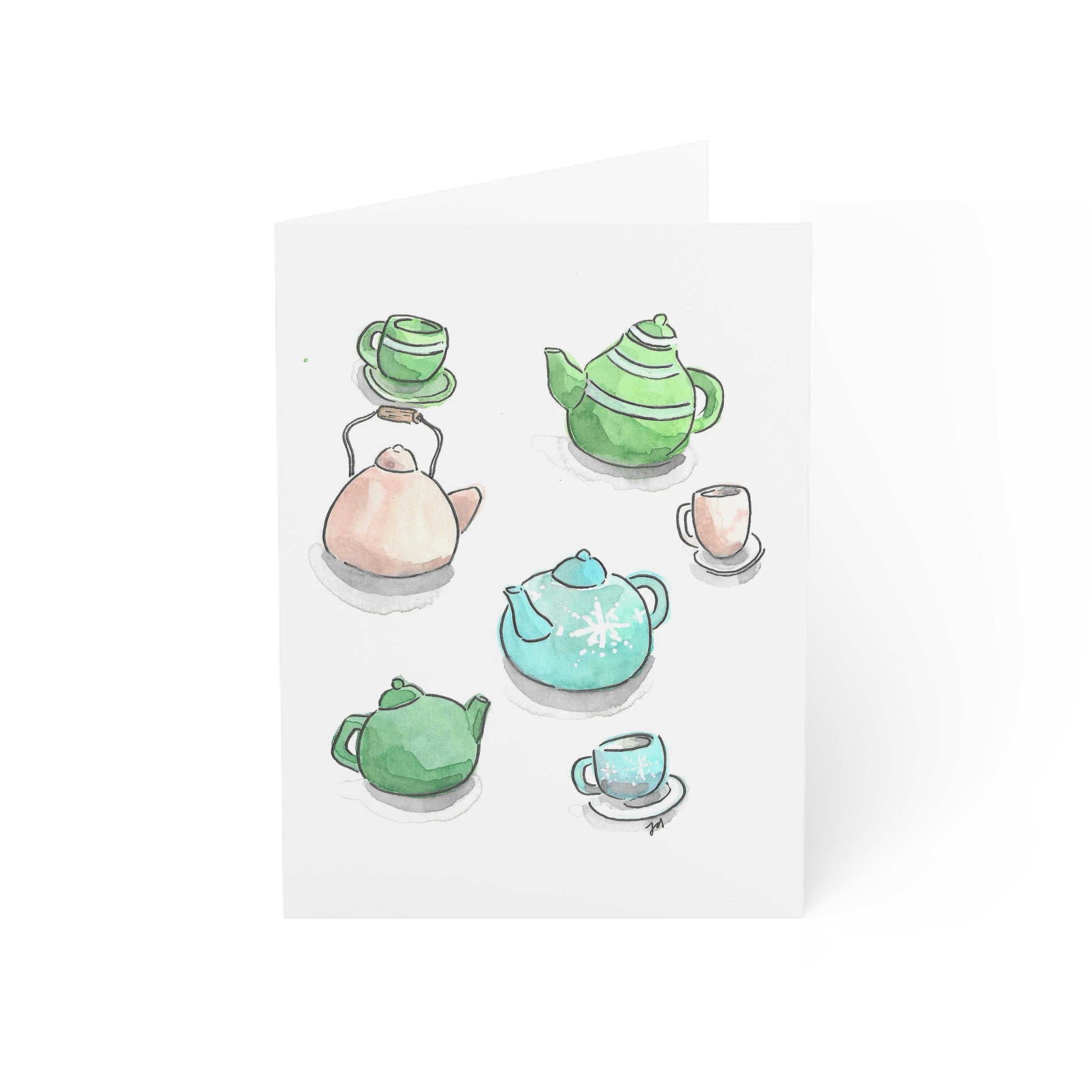 Cozy Watercolor Greeting Cards - Teapots and Teacups - Set of 1, 10, 30, or 50